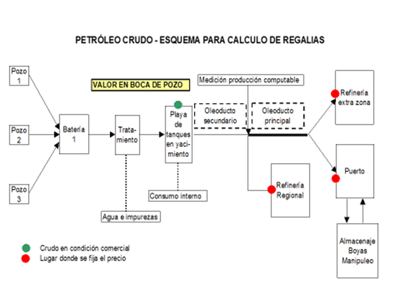 En el siguiente esquema puede observarse una aproximación a la operatoria que se realiza para el cálculo de las regalías petroleras.