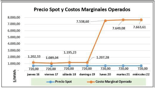 La reticencia a vender a esos valores provocó la caída de volumen y el aumento de la utilización de combustibles alternativos más caros (gas oil – fuel oil) lo que derivó, en la segunda quincena de enero de 2020, en el aumento del costo marginal de operación que casi se sextuplicó.