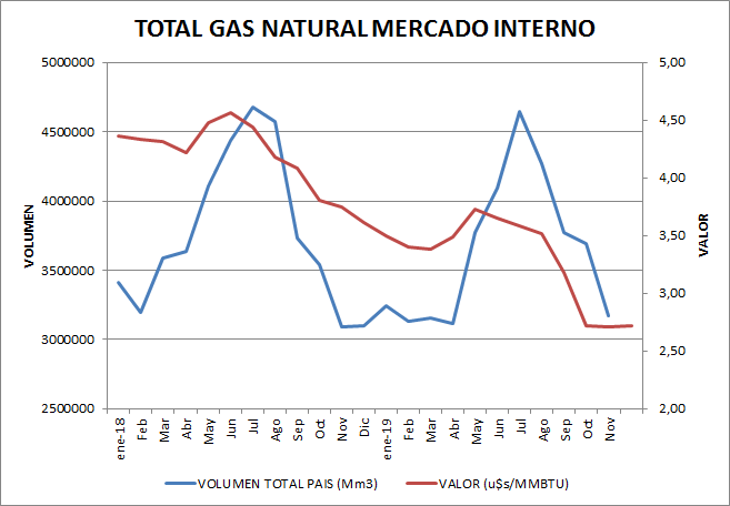 Haciendo un resumen de la totalidad del gas vendido en el mercado interno, vemos lo siguiente: