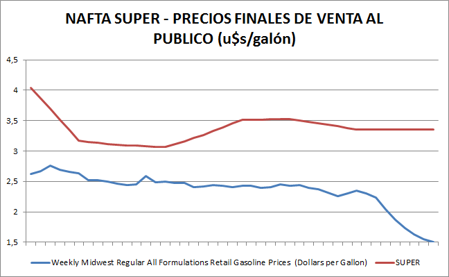 En este caso, con precios finales de venta (que incluyen, fletes, bonificación de expendedores y, fundamentalmente, impuestos) la situación es distinta.