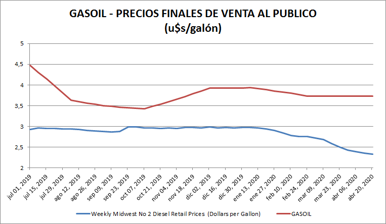 Los precios en Argentina, tanto del productos como de crudo se publican en forma mensual. Los valores semanales son calculados con variaciones lineales.