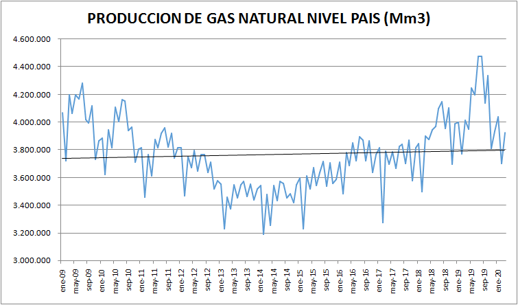 Veamos ahora qué sucedió con la producción de gas natural en el período: