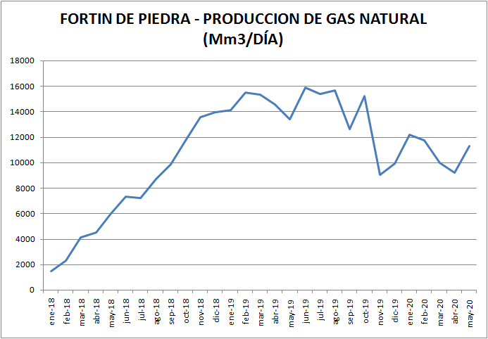 De acuerdo a estos datos, la mayor producción se produce en junio de 2019, con 15,889 millones de metros cúbicos diarios (en la nota se especificaban 17,1 millones en enero de 2019).