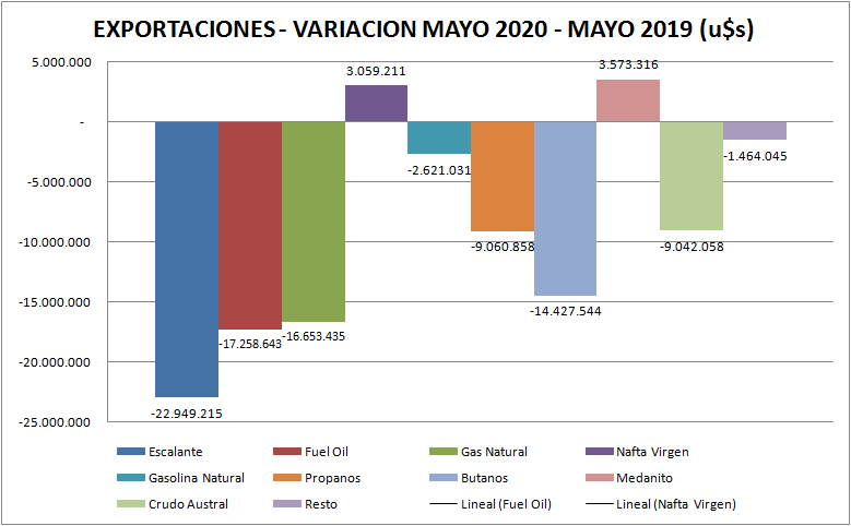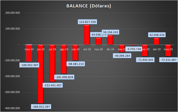En mayo de 2020 la balanza de comercio exterior de combustibles, según datos publicados por la Secretaría de Energía, fue nuevamente negativa en 72,5 millones de dólares, acumulando un déficit de 152,5 MMu$s de déficit en los primeros cinco meses.