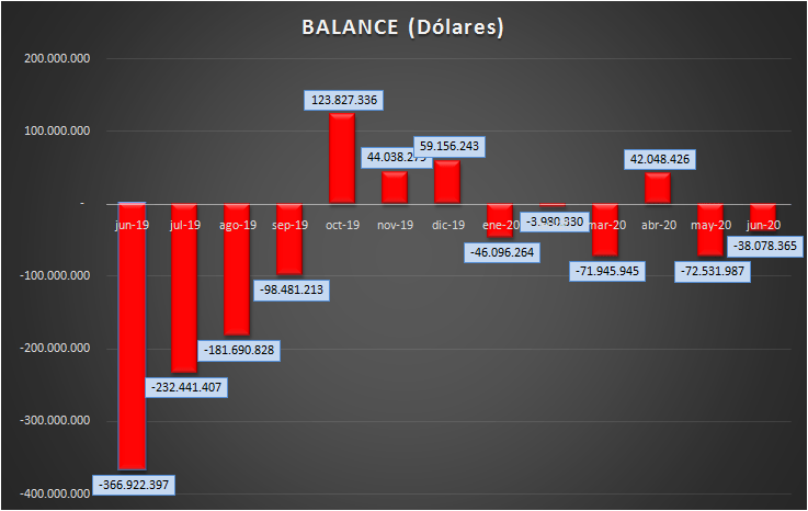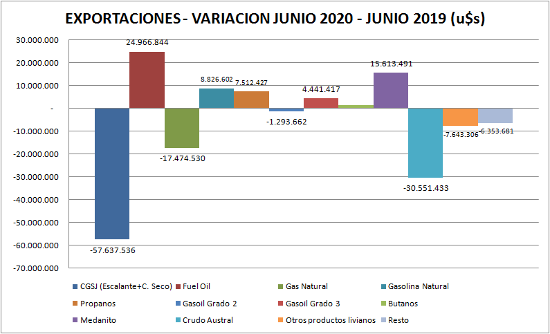 En junio de 2020 la balanza de comercio exterior de combustibles, según datos publicados por la Secretaría de Energía, fue nuevamente negativa en 38,1 millones de dólares, acumulando un déficit de 190,6 MMu$s en la primera mitad del año.