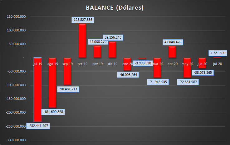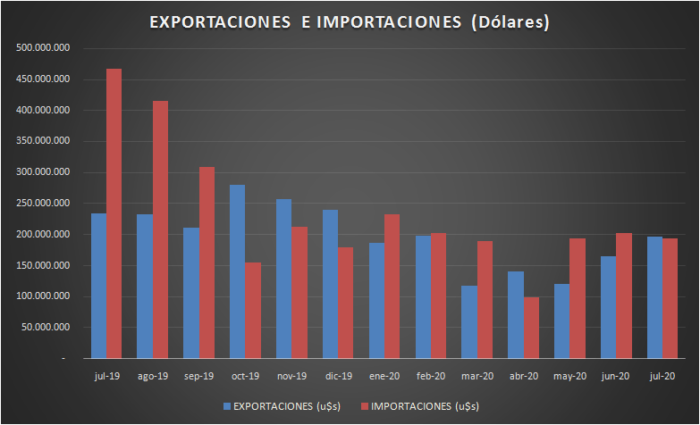 Se sigue verificando, principalmente, una gran caída de las importaciones. En julio de 2019 se había importado por valor de 466 millones de dólares, mientras que las importaciones de este año fueron de 193 millones.