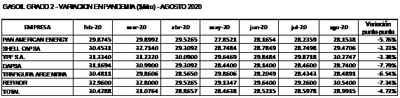 | GASOIL G2 | FEBRERO | AGOSTO | VARIACIÓN |