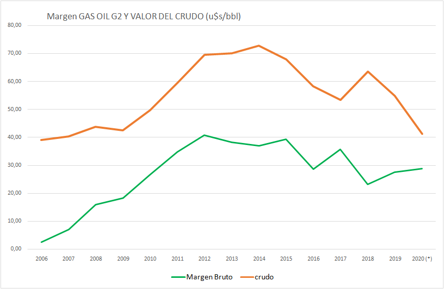 La evolución del valor del crudo y el margen se muestra en los próximos gráficos: