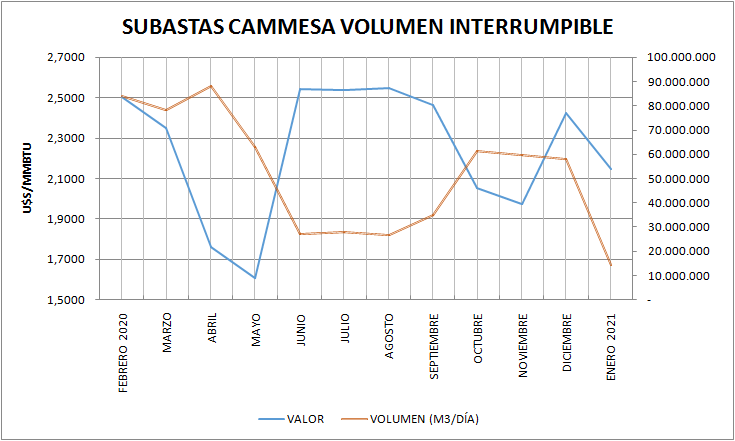 El volumen total ofertado, y asignado, fue de 14,4 millones de metro cúbicos por día a un valor de 2,1460 dólares por millón de BTU.