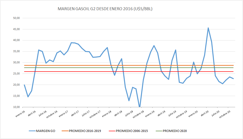 La evolución del valor del crudo y el margen se muestra en los próximos gráficos: