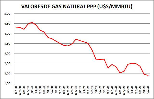 2020 – 2,26 u$s/MMBTU (hasta noviembre de 2020, inclusive)