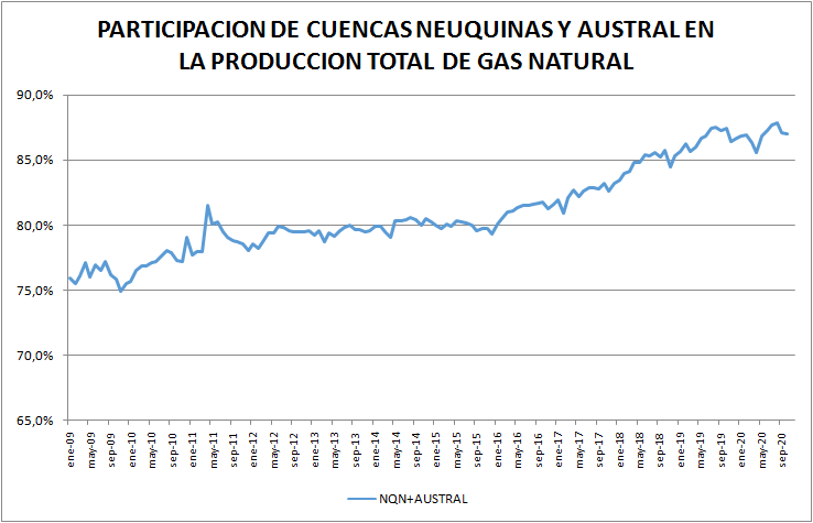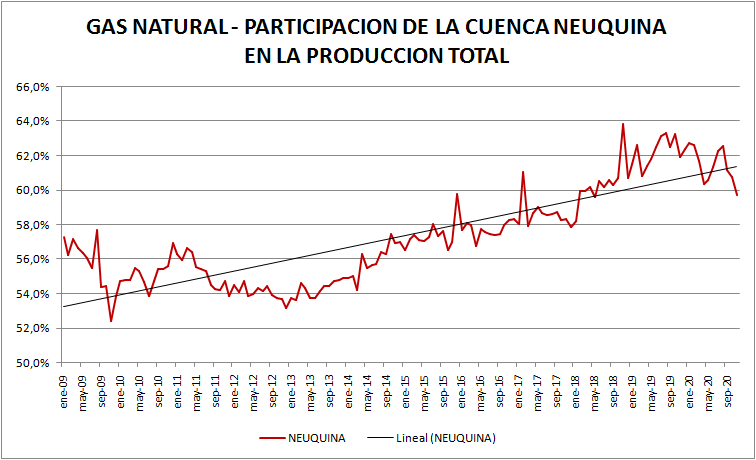 En el caso del gas natural la cuenca preponderante es la neuquina: