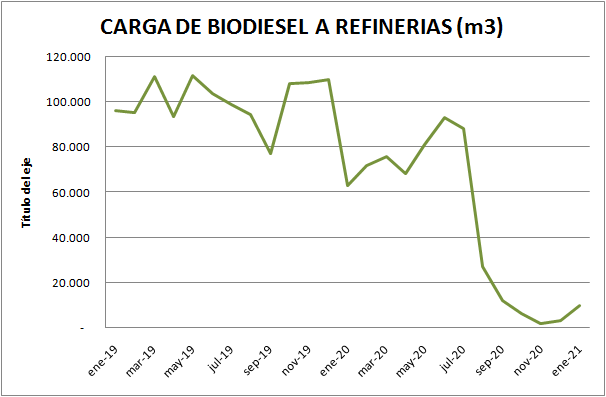La crisis del biodiesel se verifica claramente en el gráfico. En el último mes de enero comenzó una recuperación que ha sido pautada.