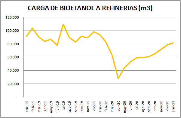En cambio, el bioetanol, por cuarto mes consecutivo, va buscando sus valores reglamentarios.