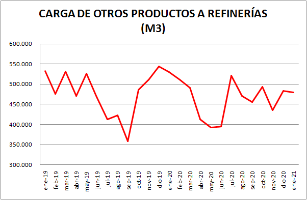 Por último veremos la evolución de “Otros productos”, que representan el 16,3% de las cargas a las refinerías del país: