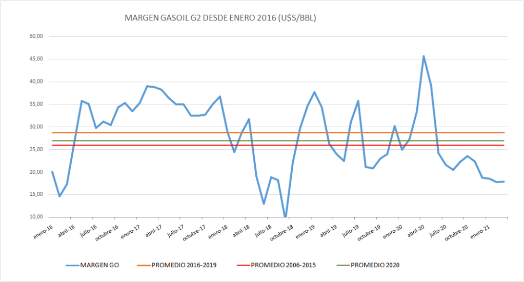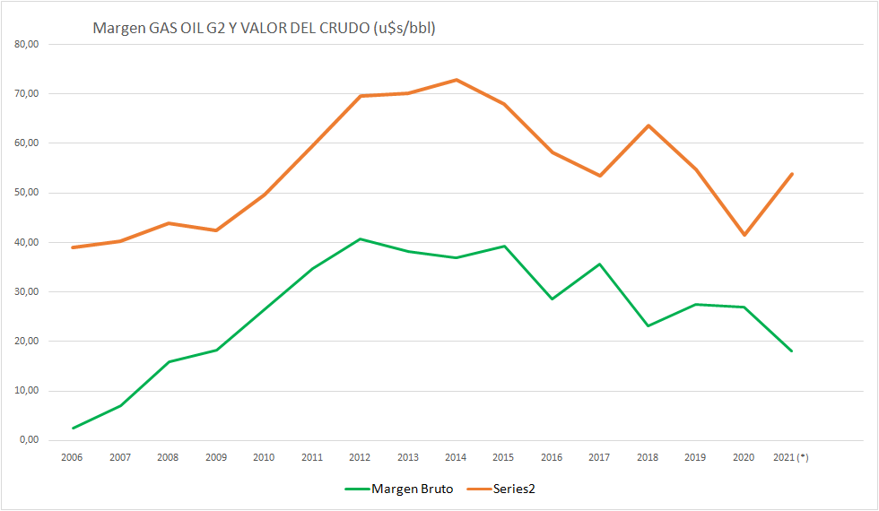 Resulta evidente que las acciones del poder político sobre los precios en el surtidor, y no tanto sobre el crudo, afecta la recuperación de valores históricos de márgenes.