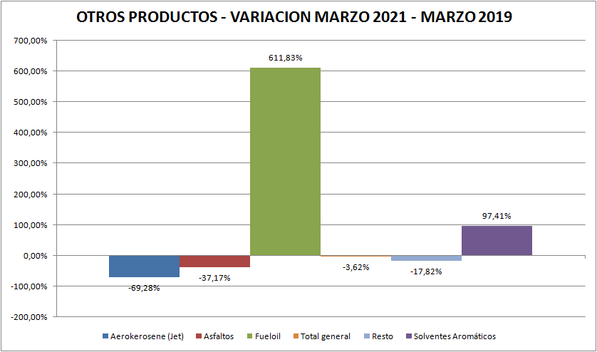 Solventes aromáticos y fuel oil están con niveles superiores a 2019.