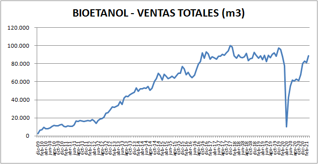 En cuanto al Bioetanol, las ventas totales han sido, desde su comienzo (INCLUIDO MARZO 2021):