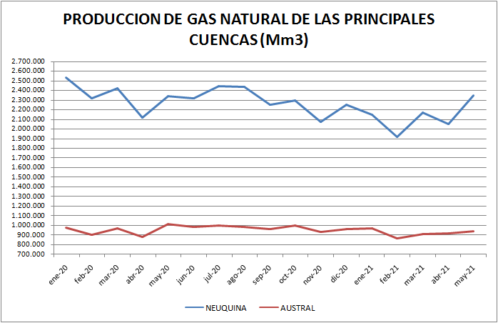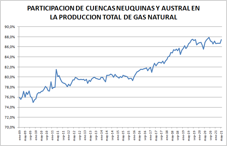 En el caso del gas natural la cuenca preponderante es la neuquina: