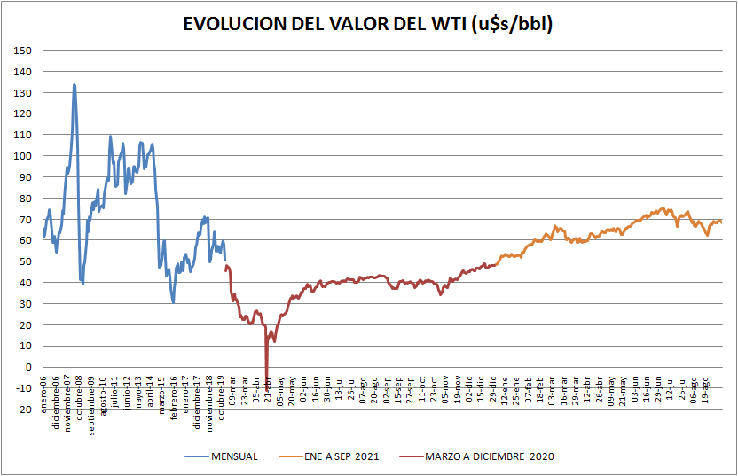 A partir del 5 de julio el valor de futuro del petróleo crudo internacional, en este caso el West Texas Intermediate (WTI), inició una tendencia a la baja (Backguardation), aunque con variaciones en torno a los 70 u$s/bbl.