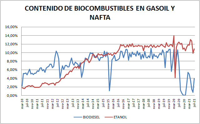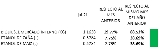 El Estado actualizó los valores en julio de 2021: +21% (en pesos) para biodiesel y +8,9% para el etanol en sus dos versiones (caña de azúcar y maíz).