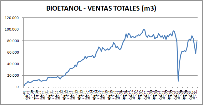 En cuanto al Bioetanol, las ventas totales han sido, desde su comienzo (INCLUIDO JULIO 2021):