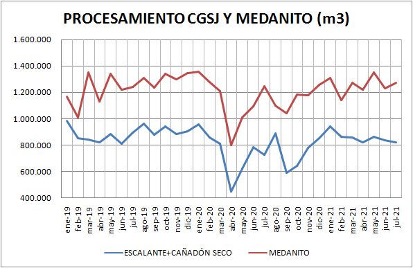 Escalante-Cañadón Seco: Se procesó un 1,63% menos que en junio y un 12,85% más que en julio de 2020.