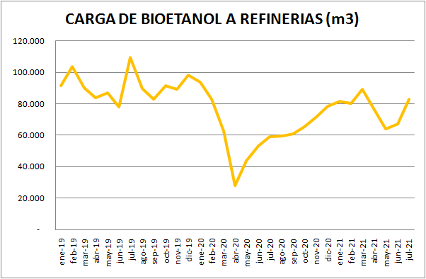 En cuanto al bioetanol, se utilizó en julio de 2021, un 23,12% más que el junio.