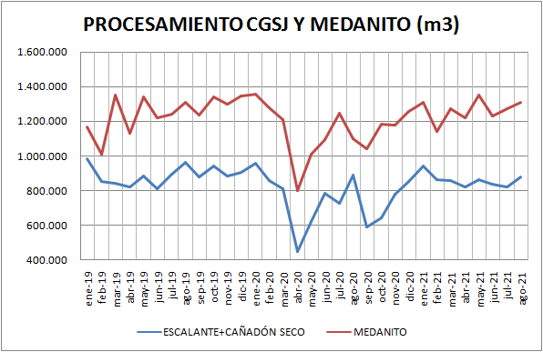 Escalante-Cañadón Seco: Se procesó un 6,72% más que en julio y un 1,38% menos que en agosto de 2020.