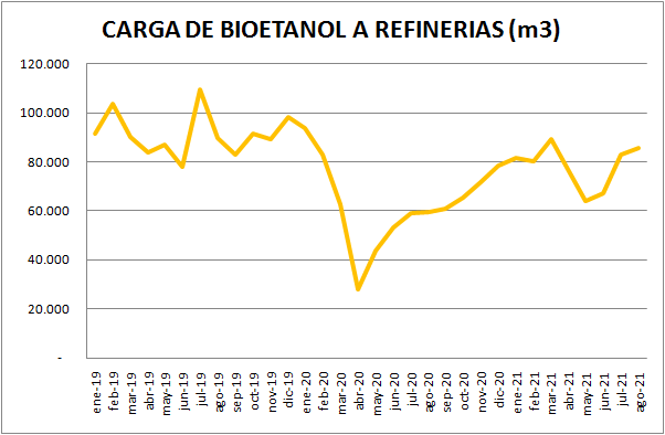 En cuanto al bioetanol, se utilizó en agosto de 2021, un 3,50% más que en julio.