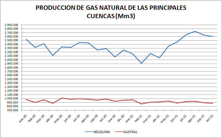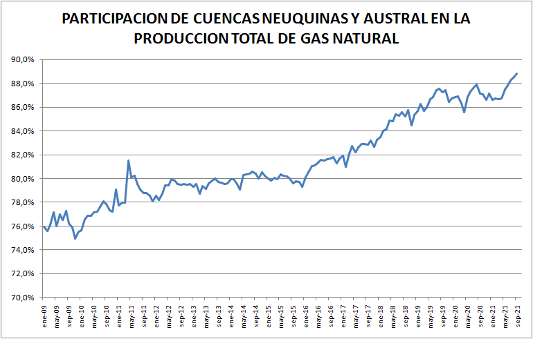 En el caso del gas natural la cuenca preponderante es la neuquina:
