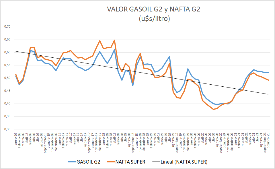 | En u$s/litro | NAFTA GRADO 2 | GASOIL GRADO 2 |