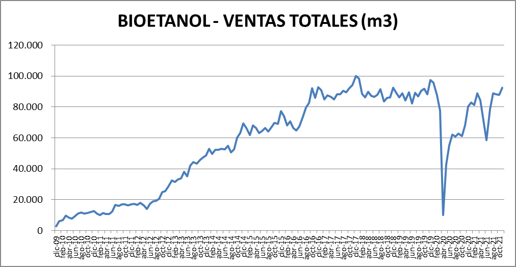 En cuanto al Bioetanol, las ventas totales han sido, desde su comienzo (Incluido octubre 2021):