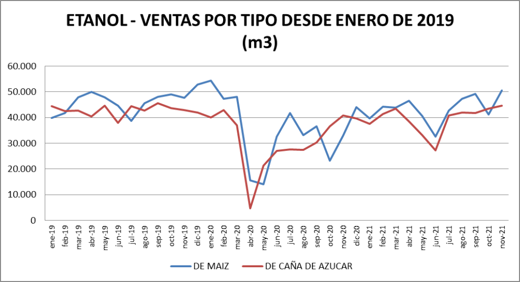 | ETANOL DE CAÑA (L) | 0,5917 | -1,06% | 44,24% |