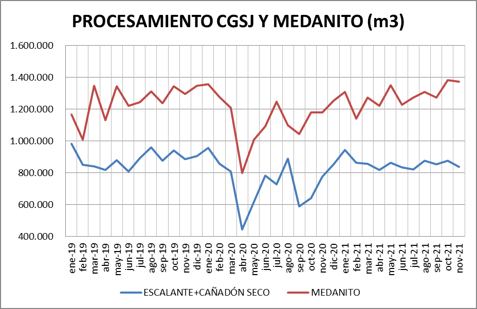 Escalante-Cañadón Seco: Se procesó un 4,15% menos que en octubre 2021 y un 8,17% más que en noviembre de 2020.