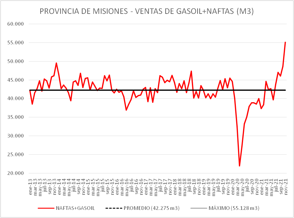 Evidentemente, la venta de noviembre de 2021, que alcanzó a 55.128 m3 es el mayor valor desde enero de 2013.