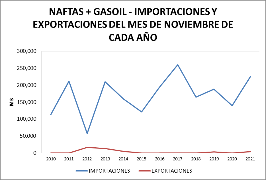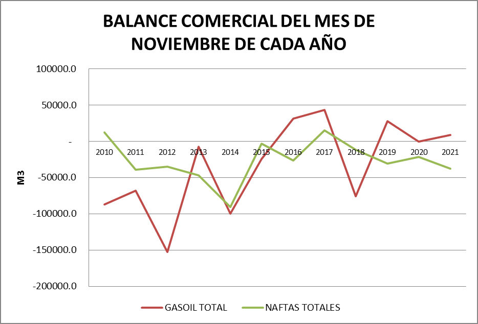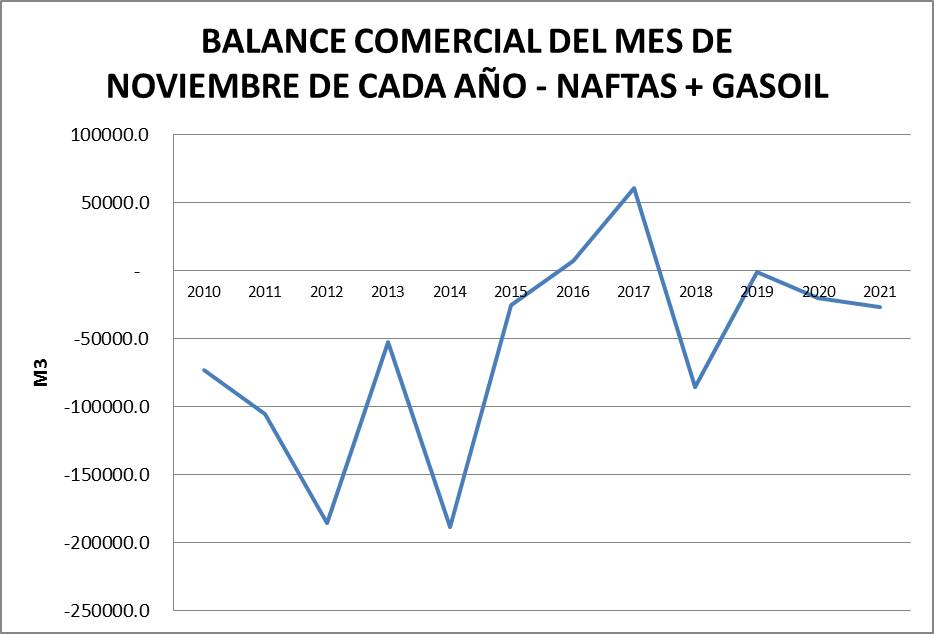 En noviembre de 2021 el déficit se refiere a las naftas, pero en un quantum menor.