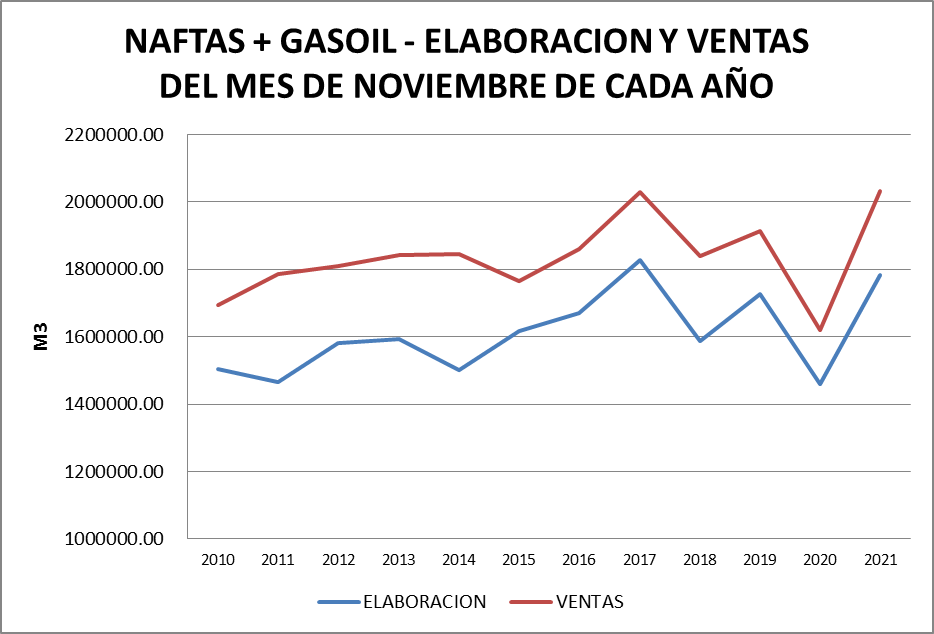 Hasta noviembre de 2021 no se verificaban hechos que justificaran quiebres en la comercialización de naftas y gasoil.