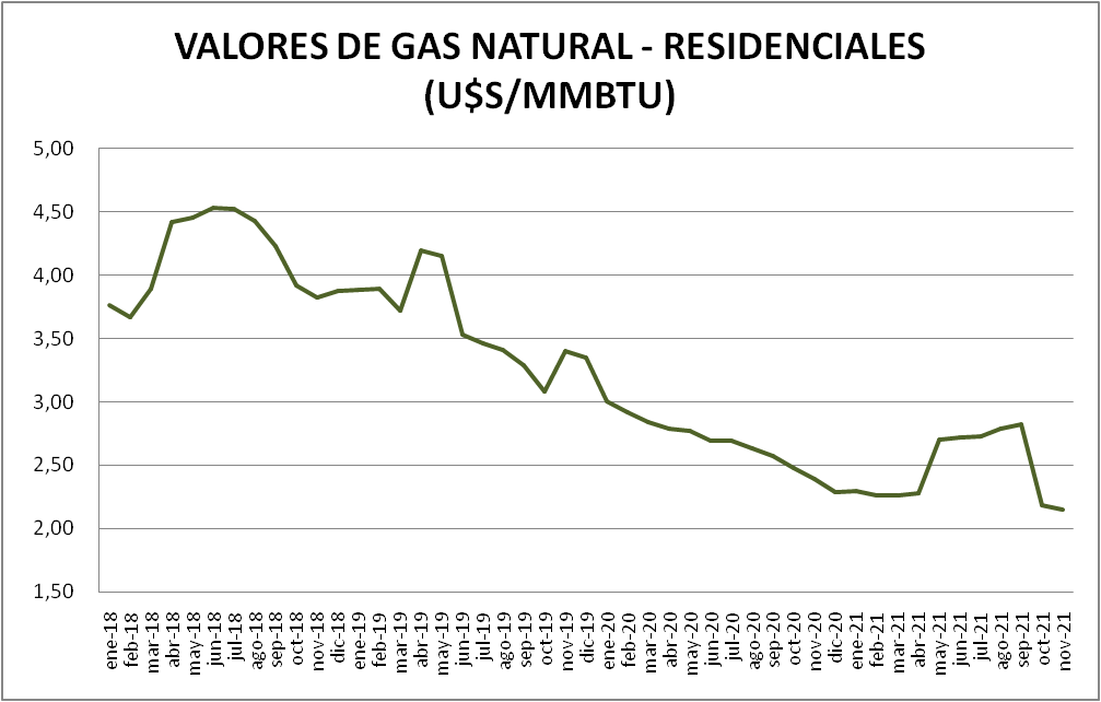 El valor de noviembre, 2,15 dólares por millón de BTU, resulta el más bajo de la serie.