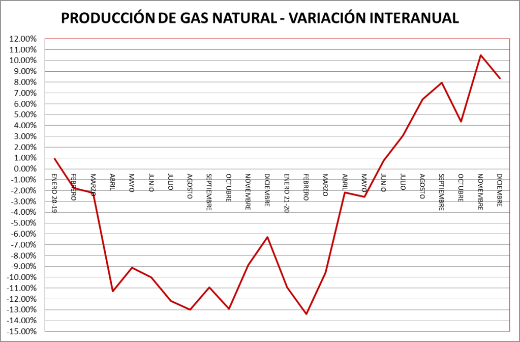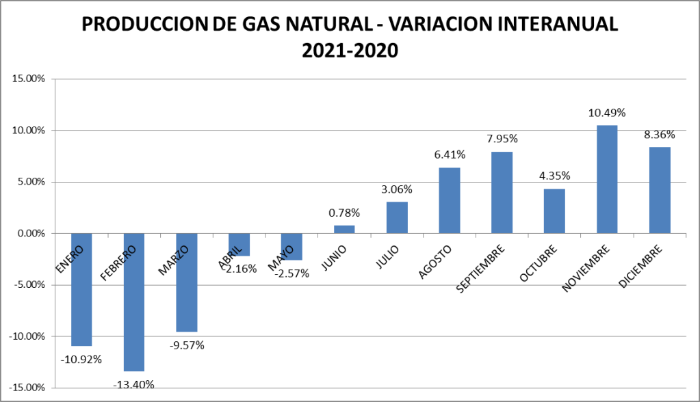 Agregaremos, también para el gas natural, cuadro y gráfico de la variación entre 2021 y 2020: