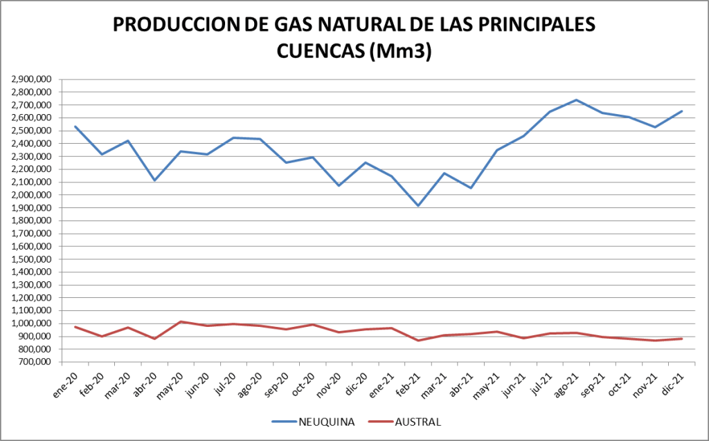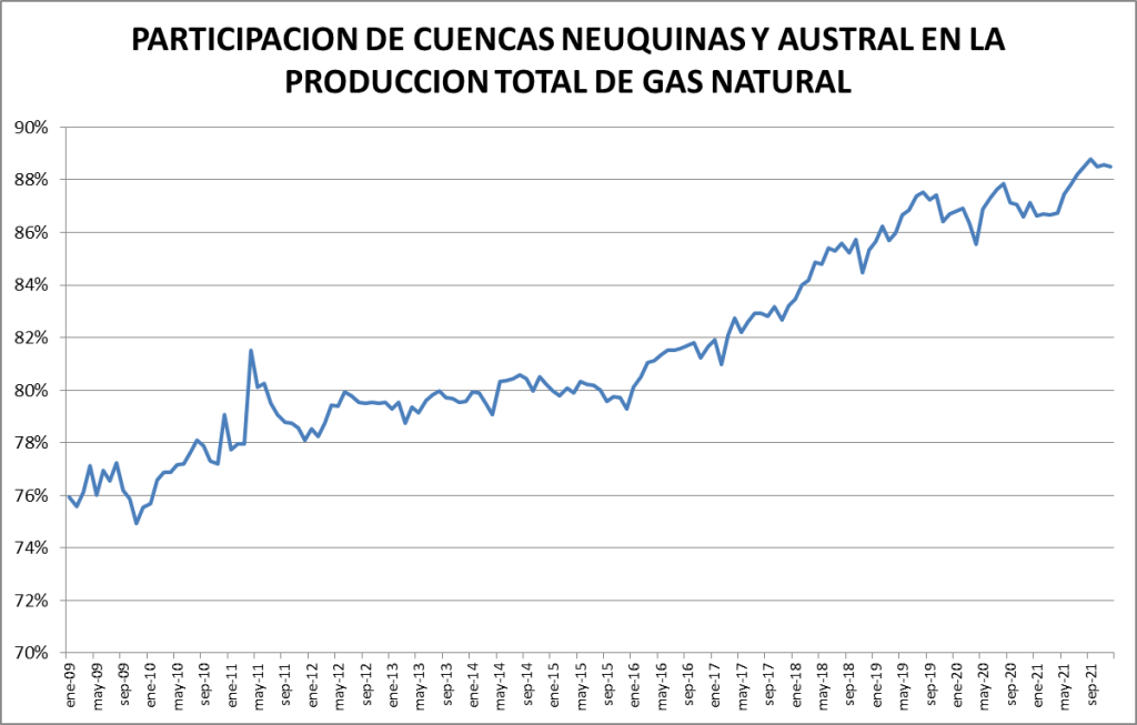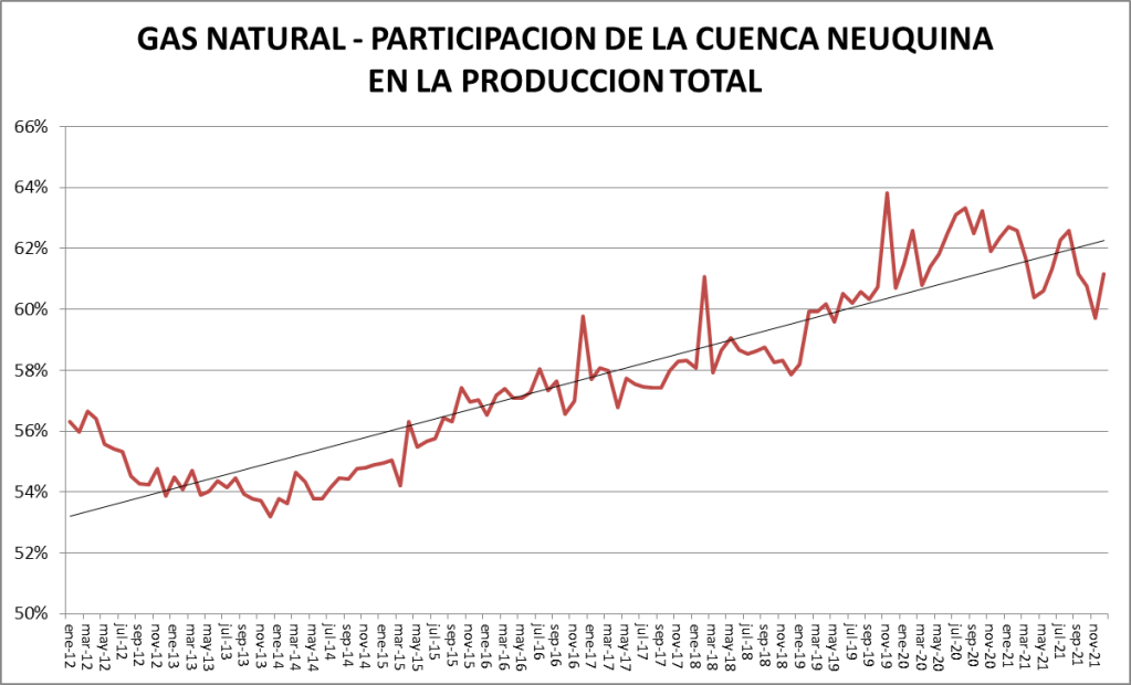 En el caso del gas natural la cuenca preponderante es la neuquina: