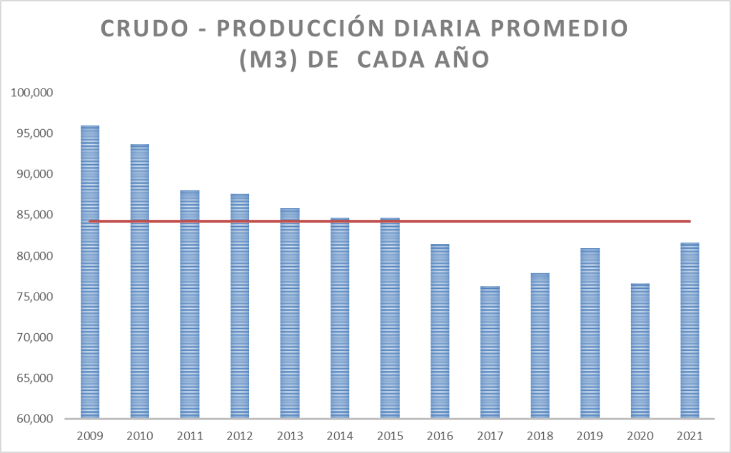 La producción diaria del 2021 es la más alta de los últimos cinco años y se ubica por debajo del promedio de la serie.