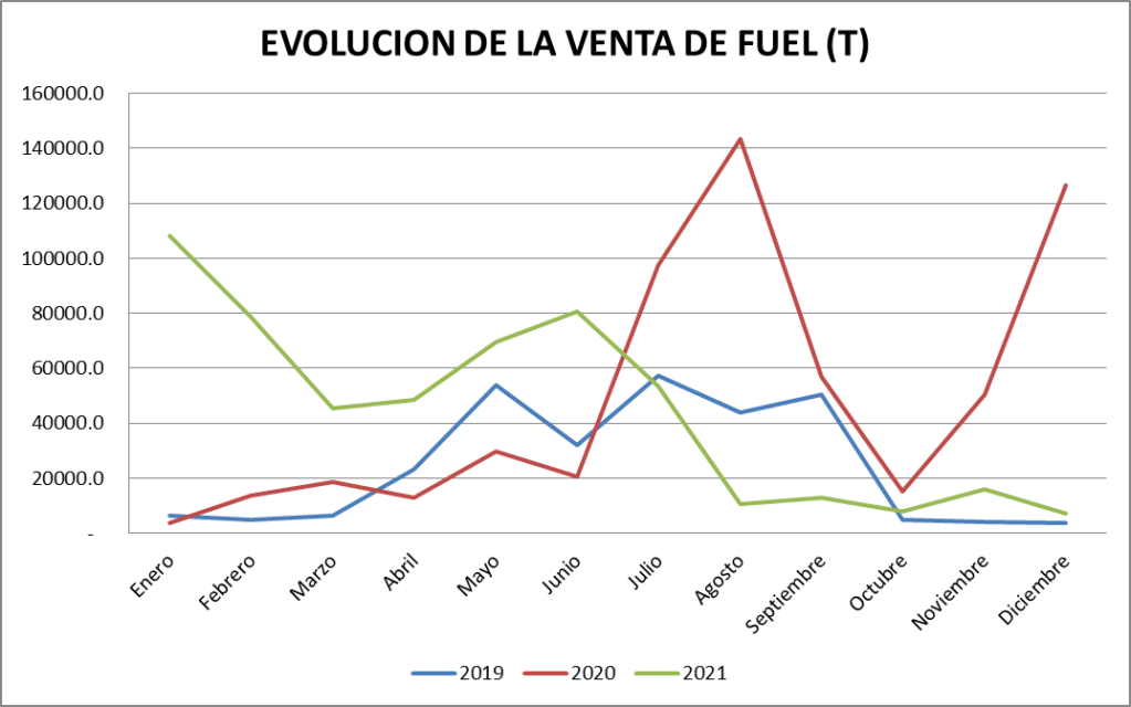 Las ventas de fuel oil registradas en diciembre son similares a las de año 2019, pero muy inferiores a las de 2020.