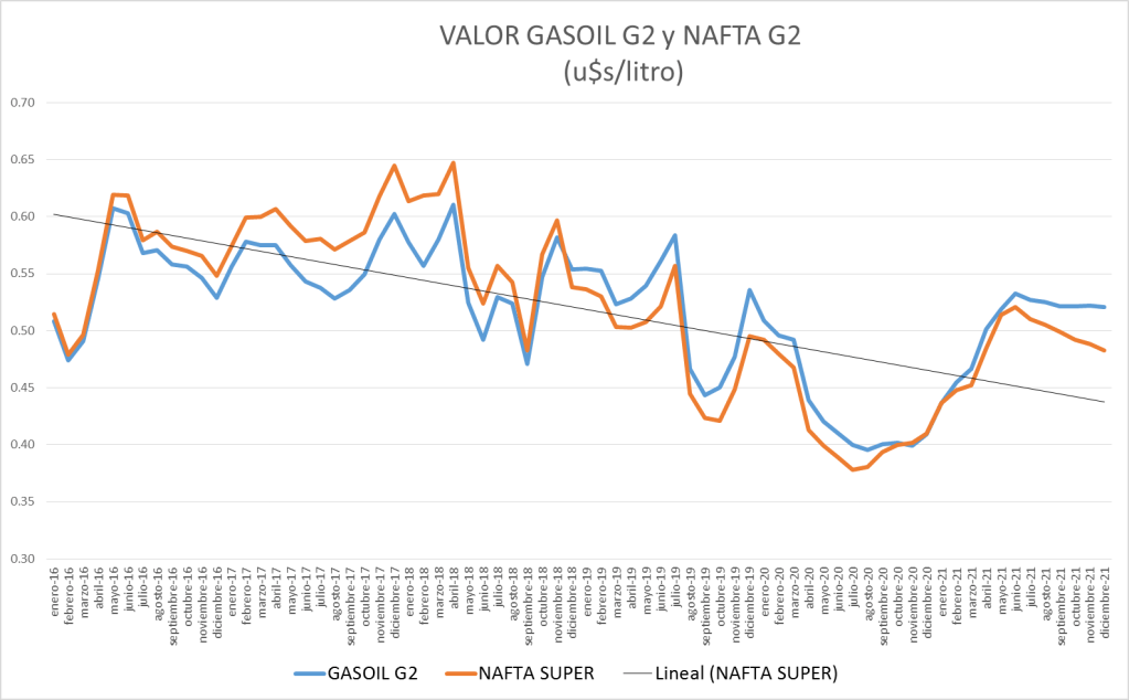 | En u$s/litro | NAFTA GRADO 2 | GASOIL GRADO 2 |