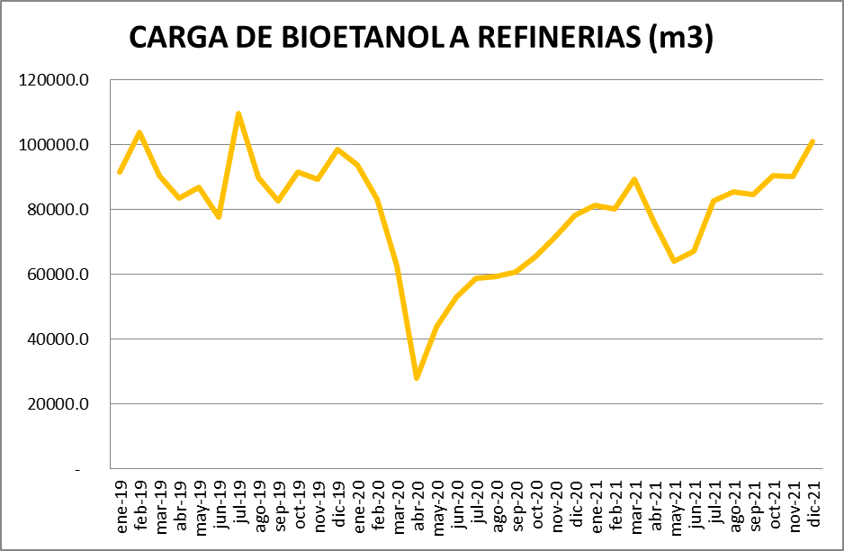 En cuanto al bioetanol, se utilizó en diciembre de 2021, un 11,97% más que en noviembre.