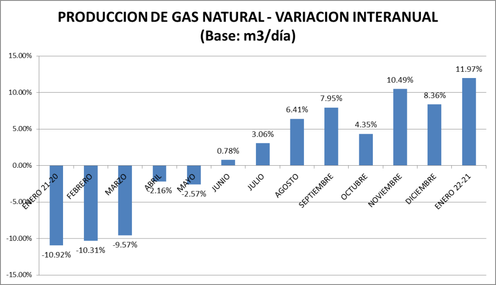 En el caso del gas natural la participación en enero de 2022 fue del 52,73%, mientras que a comienzos de año 2021 era de 41,87%.