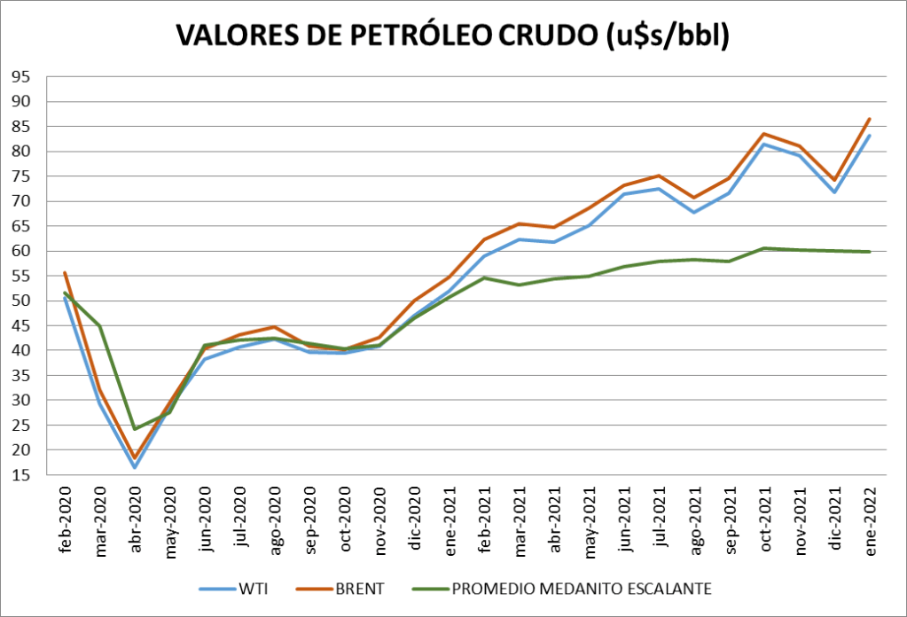 El promedio nacional de enero de 2022 es de 59,83 dólares por barril, casi idéntico al de diciembre de 2021.
