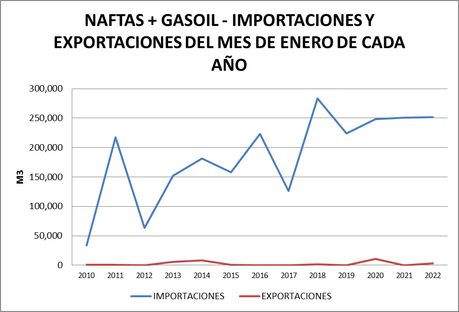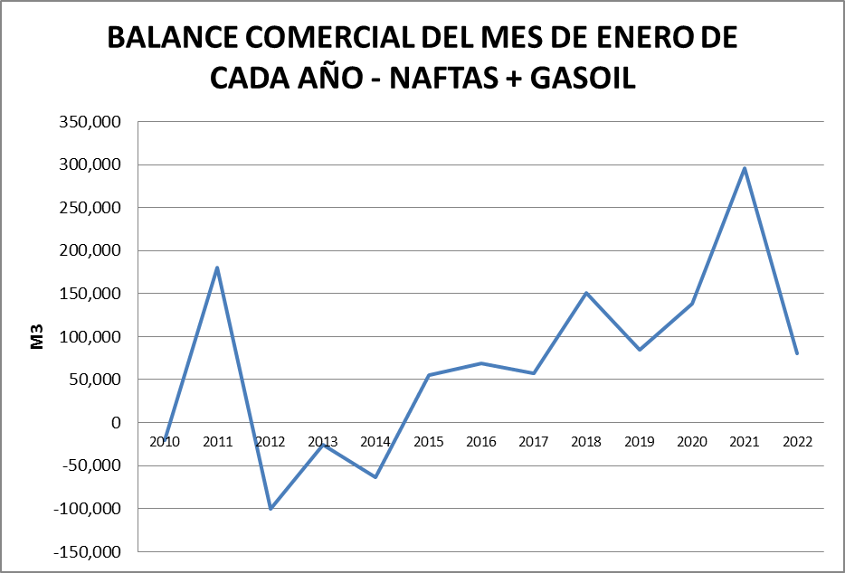 Ambos productos muestran la caída del balance positivo en enero de 2022, con una mayor disminución en el gasoil.