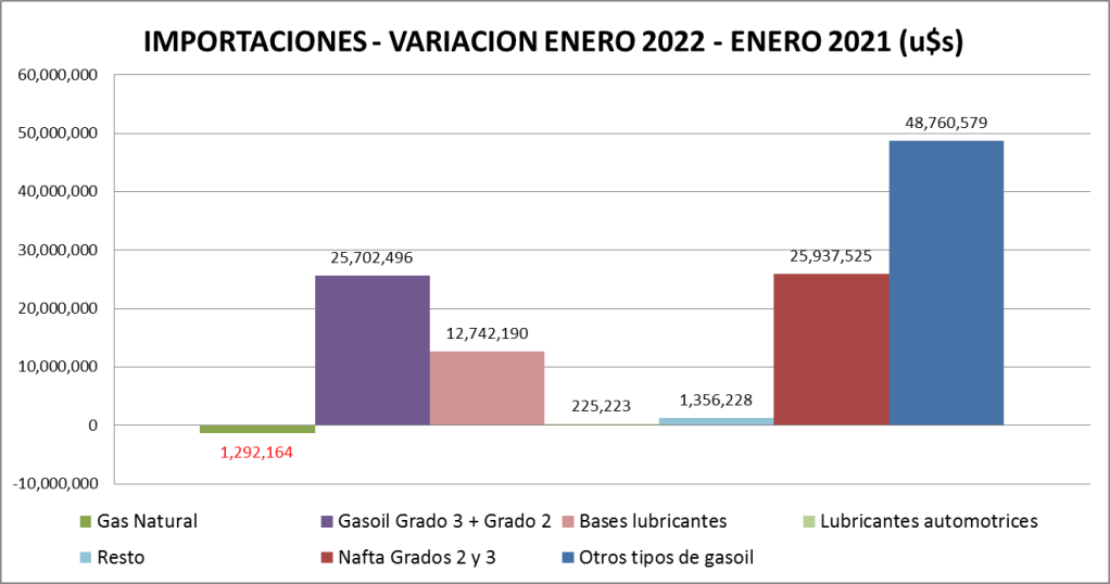 Todos los productos aumentaron las importaciones, salvo el gas natural que se mantiene prácticamente igual.