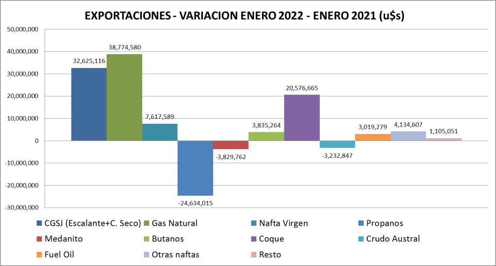 Incorporamos un cuadro con las exportaciones de gas natural ya que en enero de 2022 es la segunda mayor detrás de la exportación de Escalante, con 43,4 millones de dólares:
